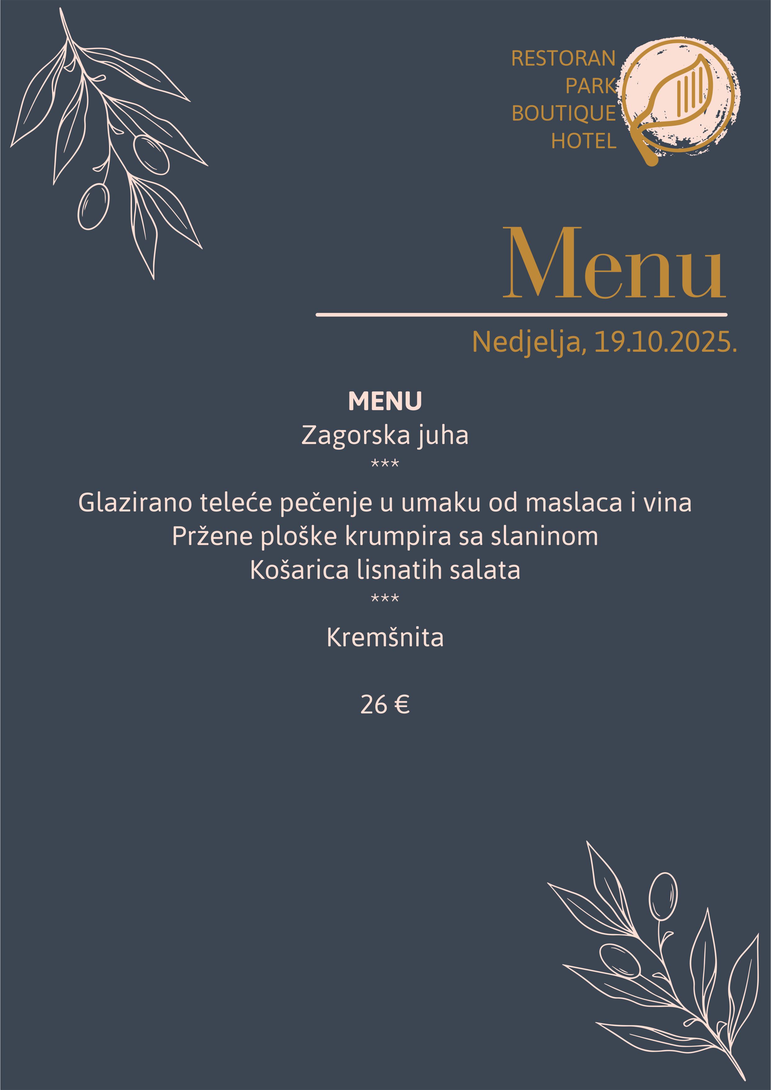 The à la carte restaurant Park Boutique Hotel is located in a very attractive area, based on a vision of superb gastronomic offer of local dishes and modern cuisine with an offer of excellent wines and beverages.